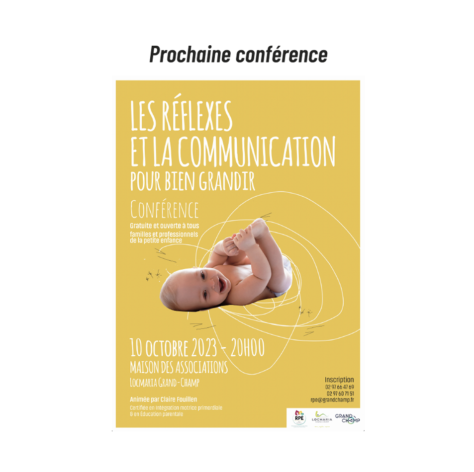 Je suis conférencière sur les thèmes liés au développement du bébé. Certifiée en Education Parentale et en IMP Intégration Motrice Primordiale, avec une spécialisation sur le mouvement du bébé, j’aborde l’aspect préventif de la motricité à partir de la naissance et la communication qui fait grandir. J’explique l’importance du cheminement dans le développement moteur du bébé qui agit aussi sur son développement corporel, émotionnel et cognitif. Je m’adresse aux acteurs de la petite enfance, les familles et les professionnels. La posture de l’adulte dans son rôle d’éducateur est essentielle pour un bien Être en Equilibre.